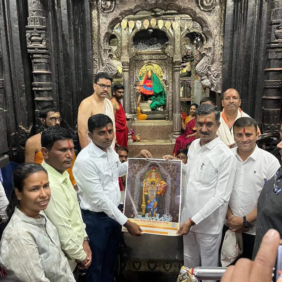 मंत्री शंभूराज देसाई यांनी घेतले करवीर निवासिनी आई अंबाबाईचे दर्शन; कोल्हापूर जिल्हाधिकारी अमोल येडगे यांच्या हस्ते सत्कार