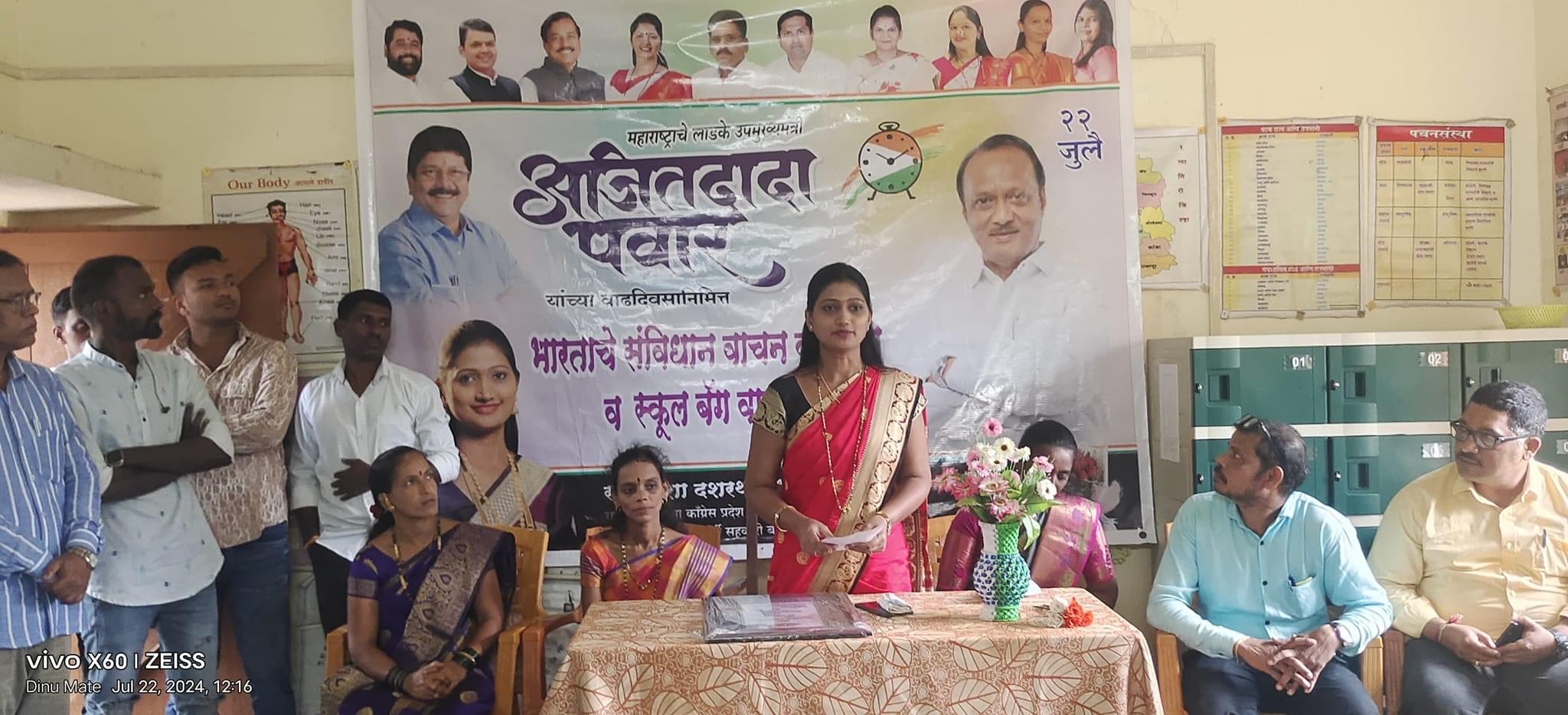 उपमुख्यमंत्री अजितदादा पवार यांच्या वाढदिवसानिमित्त चिपळूण मध्ये महिला राष्ट्रवादी काँग्रेस तर्फे संविधान वाचन व शैक्षणिक साहित्याचे वाटप