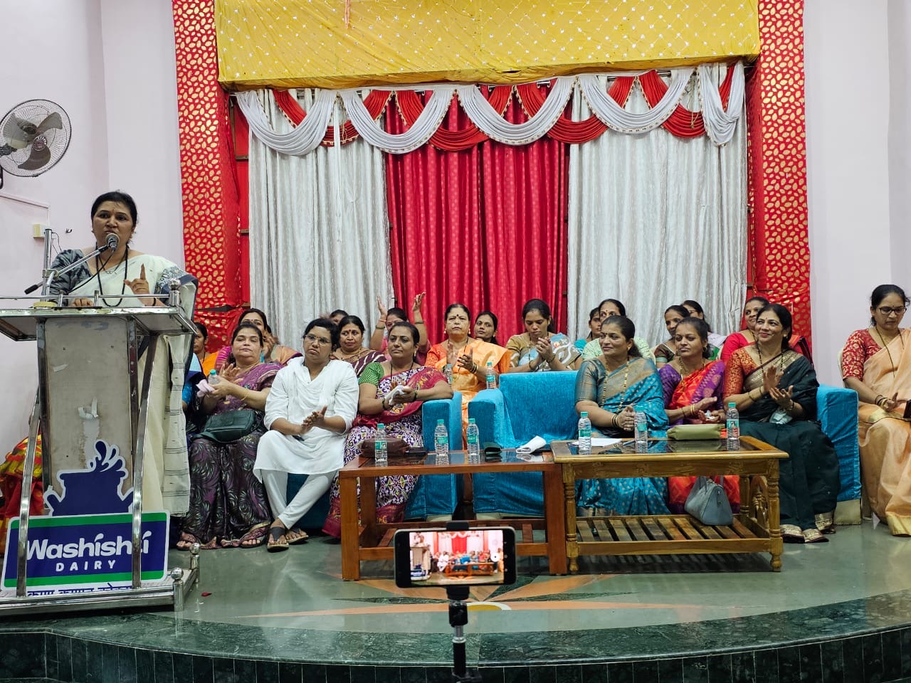 हा कार्यक्रम खेर्डी येथील संस्कृती सभागृहात शुक्रवारी झाला. यावेळी व्यासपीठावर खेर्डीच्या सरपंच सौ. अश्विनी पंडित, उपसरपंच सौ. सुप्रिया उतेकर, सदस्या सौ. सुगंधा माळी, राष्ट्रवादी काँग्रेस शरदचंद्र पवार पक्षाच्या महिला आघाडी तालुकाध्यक्ष सौ. राधा शिंदे, शहराध्यक्षा सौ. डॉ. रेहमत जबले, कार्याध्यक्षा सौ. अंजली कदम, उबाठा महिला आघाडी उपतालुकाप्रमुख सौ. दीप्ती सावंतदेसाई, भिले सरपंच सौ. आदिती गुढेकर, माजी नगरसेविका सौ. सीमा चाळके, चिपळूण अर्बन बँकेच्या माजी संचालिका सौ. छाया खातू आदी उपस्थित होत्या. यावेळी खेर्डीमधील महिला बचतगट, ग्रामपंचायत सीआरपी प्रतिनिधी यांचा वाशिष्ठी डेअरी तर्फे सन्मान करण्यात आला.