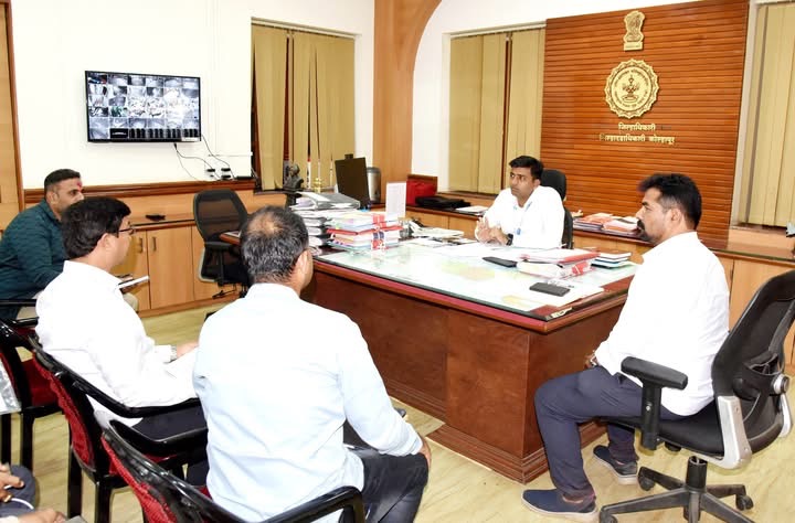 अंबाबाई मंदिर परिसरातील नूतनीकरण कामांबाबत जिल्हाधिकारी श्री येडगे यांच्या अध्यक्षतेखाली जिल्हाधिकारी कार्यालयात आढावा बैठक घेण्यात आली. यावेळी देवस्थान व्यवस्थापन समितीचे सचिव शिवराज नाईकवाडे, अभियंता सुयश पाटील, वास्तुविशारद, ठेकेदार चंदुलाल ओसवाल, दशरथ देसाई आदी उपस्थित होते.