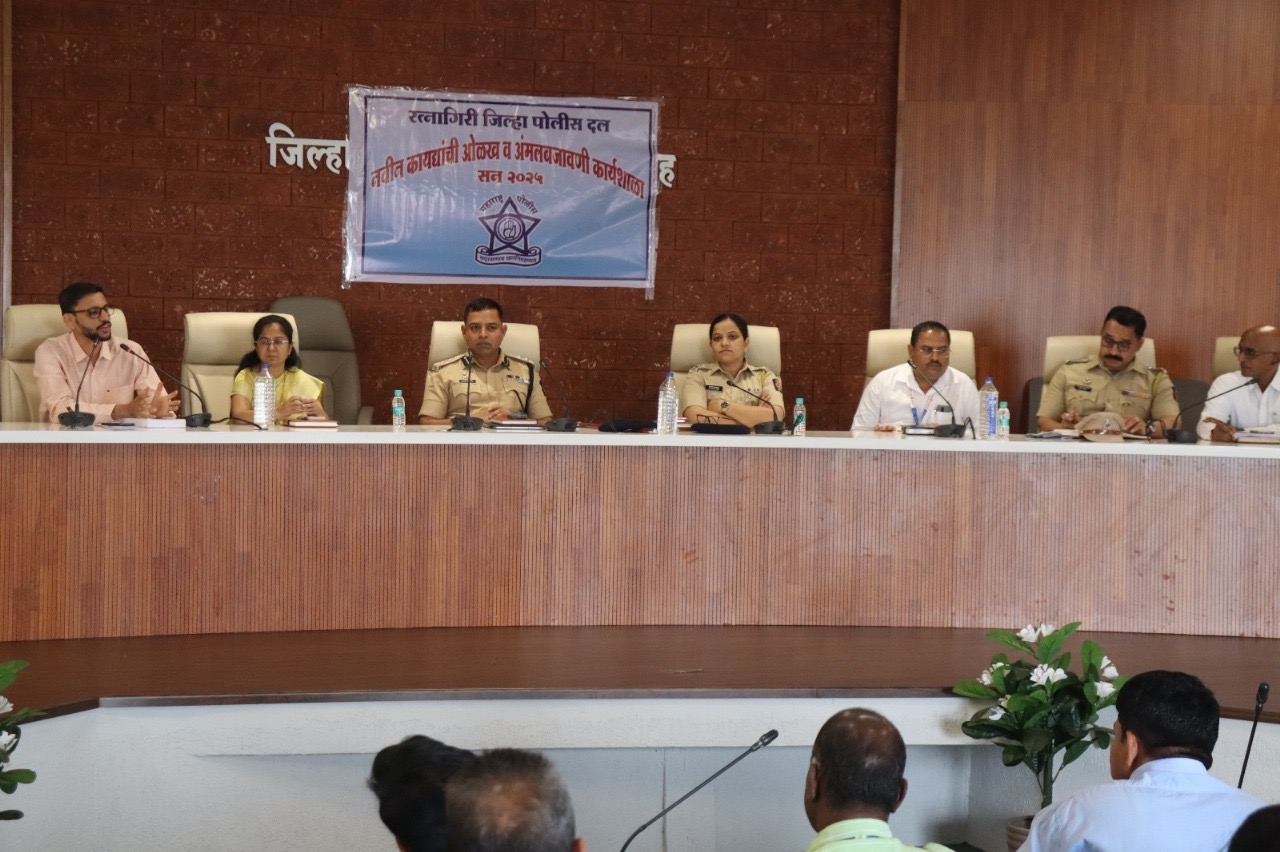 रत्नागिरी जिल्ह्यामध्ये नवीन तीन कायद्यां संदर्भात आगामी १०० दिवसात प्रत्येक पोलीस ठाण्याचा हद्दीमध्ये घेण्यात येणार विविध कार्य शाळा.