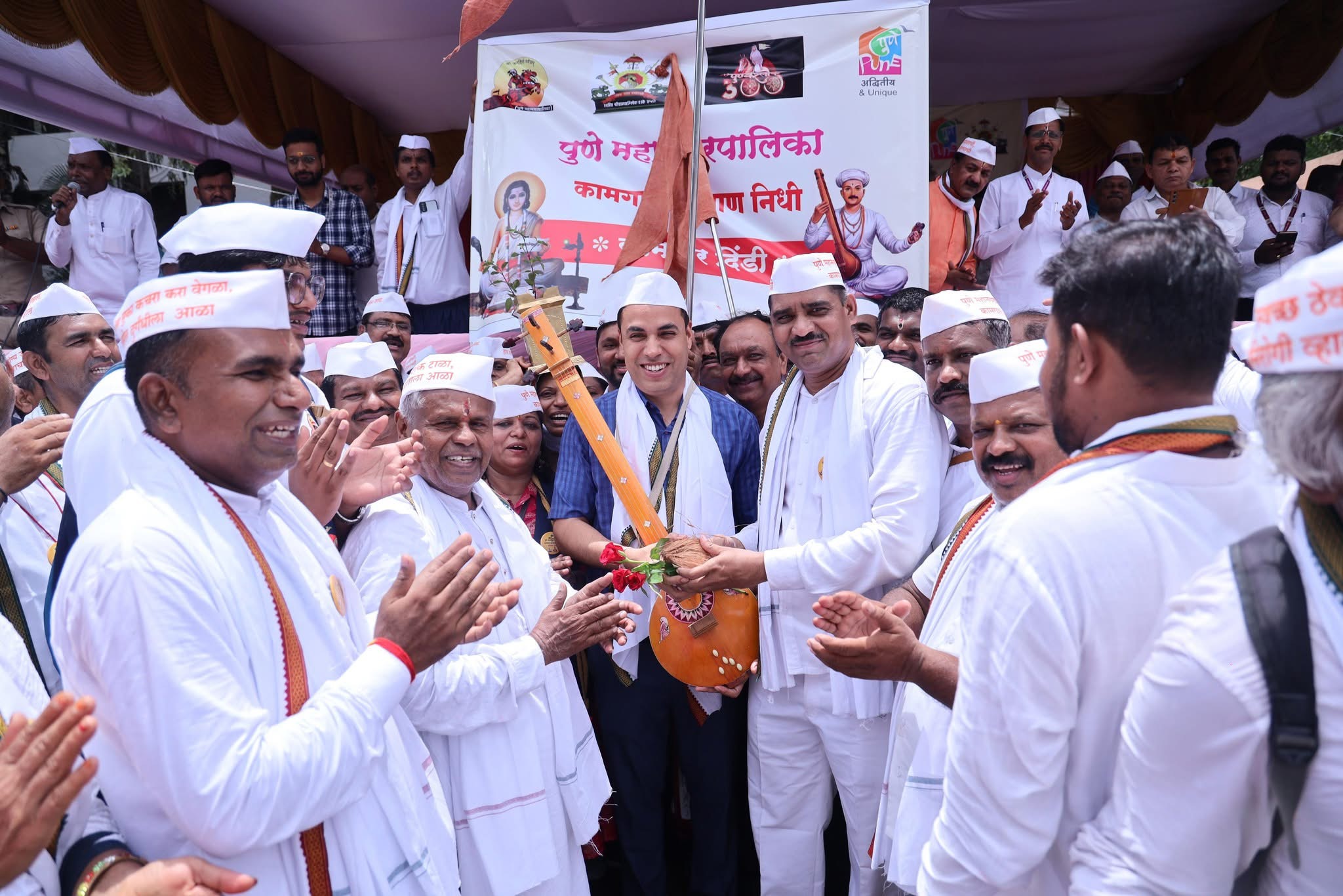 श्री.संत ज्ञानेश्वर माऊलींच्या पालखीचे पुणे नगरीत महानगरपालिकेकडून स्वागत ; पालखी सोहळ्यात सामील होत महानगरपालिका आयुक्त नवल किशोर राम यांनी केले स्वागत